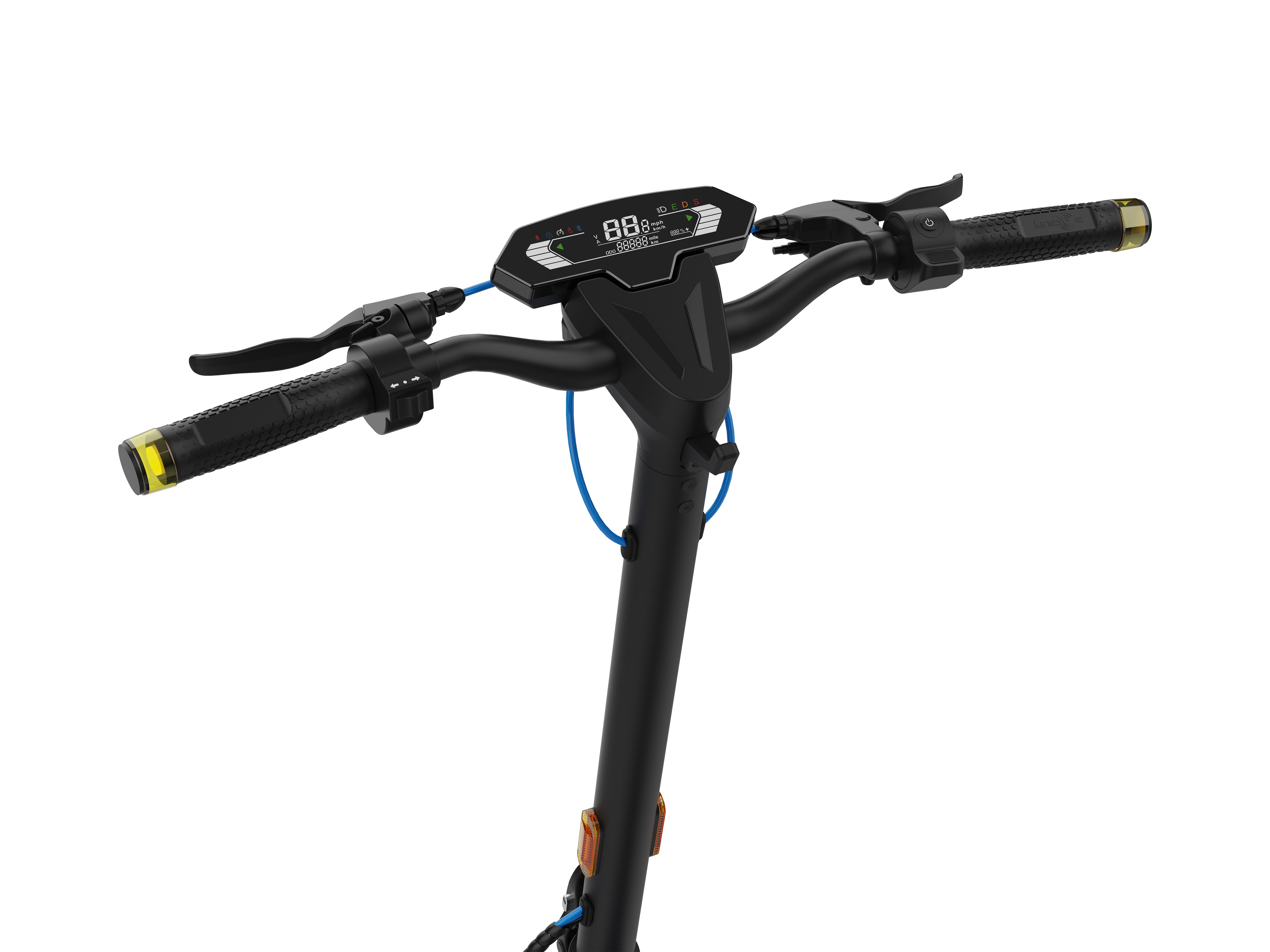 Das klare LED-Display zeigt auf einen Blick alle wichtigen Informationen wie Fahrmodus, Geschwindigkeit, Akkustand und zurückgelegte Distanz. So behalten Sie während jeder Fahrt alles im Blick.
